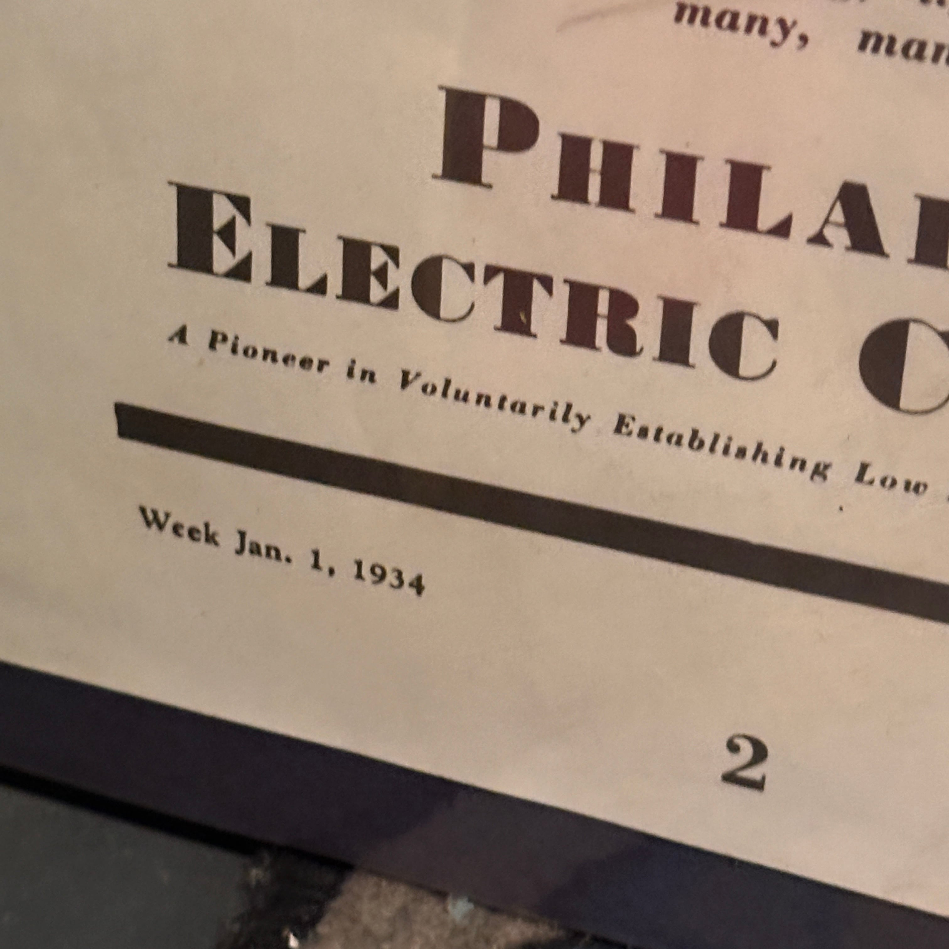左側はフィラデルフィア電力(PECO)、右側はネブラスカ電力のメッセージポスターとなっており、当時の電力会社がどのように顧客(市民)との信頼関係を築こうとしていたかが伝わる貴重な資料です。